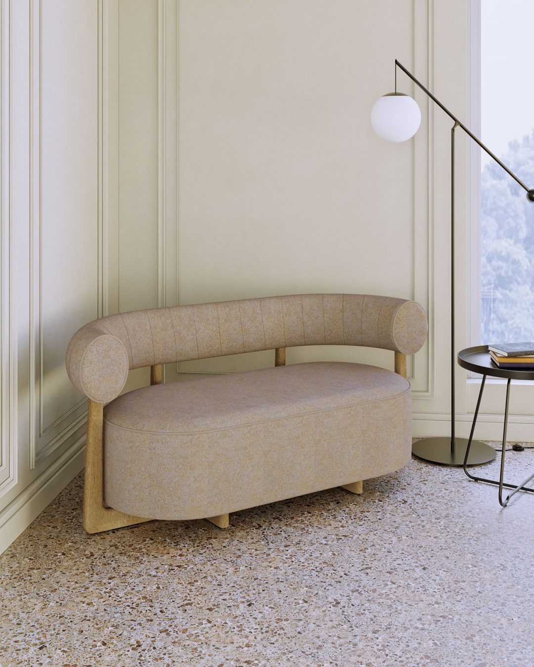 Divano a 2 posti. Seduta, fianchi e schienale imbottiti. Sedile removibile per una facile igienizzazione. Posizione fissa. Faggio.