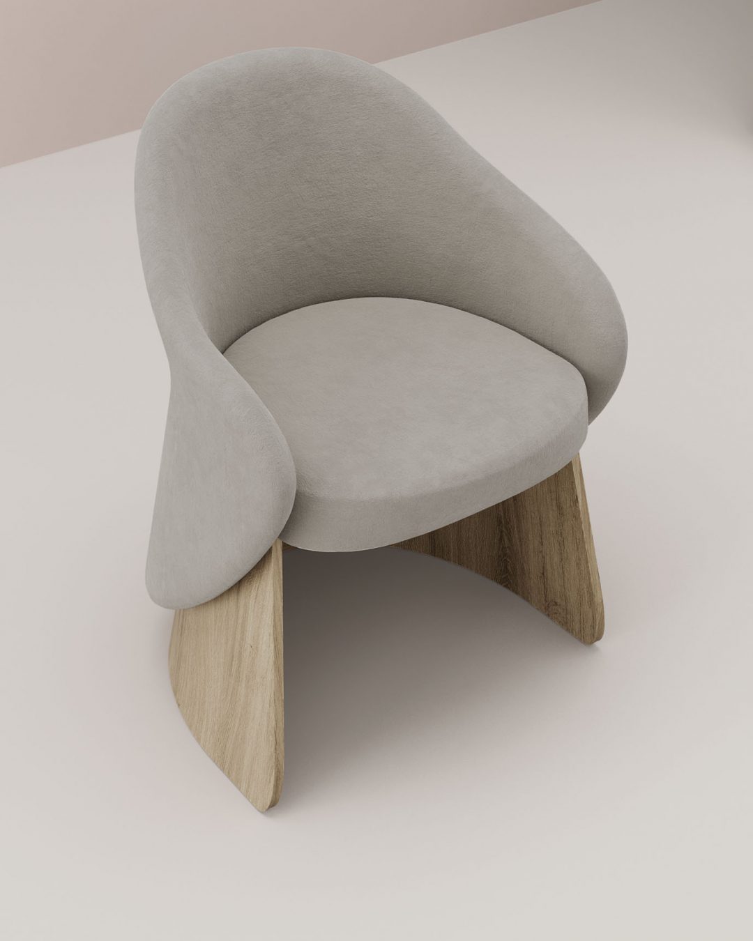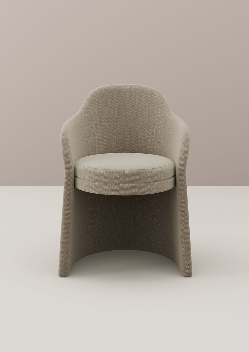 Design GORDON GUILLAUMIER – Poltroncina imbottita. Basamento in due diverse versioni.