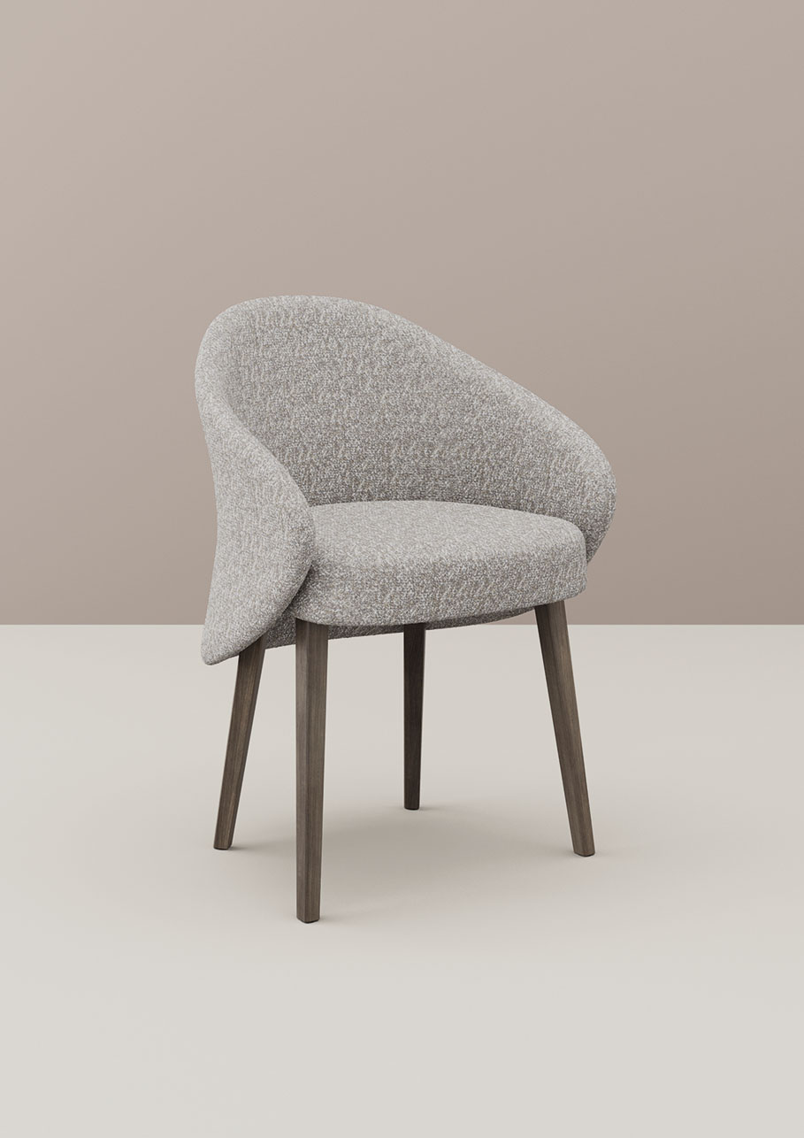 Poltroncina con schienale avvolgente. Imbottitura sagomata. 105-12/1 Faggio ~ 105-12/1N Noce