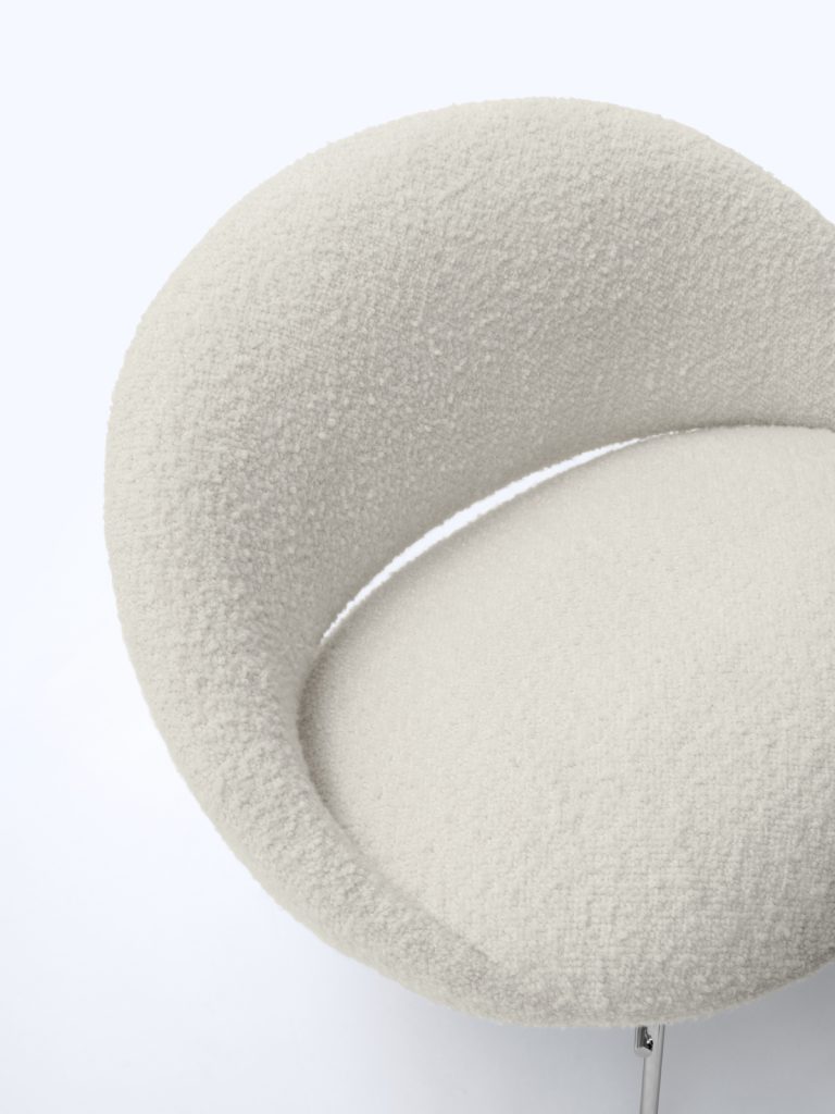 È un contract che rievoca scenari domestici, che amo definire anch’esso “morbido” perché trasversale. Cloche ha proporzioni ampie e forme quasi sensuali, proprio per rispondere a questa nuova esigenza. Perché sempre di più desideriamo che la hall di un albergo o uno spazio di attesa ci facciano sentire a casa, rilassati, siano un luogo caldo, accogliente. I due mondi si stanno avvicinando e Cloche, declinata in poltrona, poltroncina e pouf, si inserisce perfettamente in entrambe. Anche le tre diverse opzioni del basamento sono progettate per rendere la collezione adattabile a più contesti d’arredo, dal contract al domestico.
