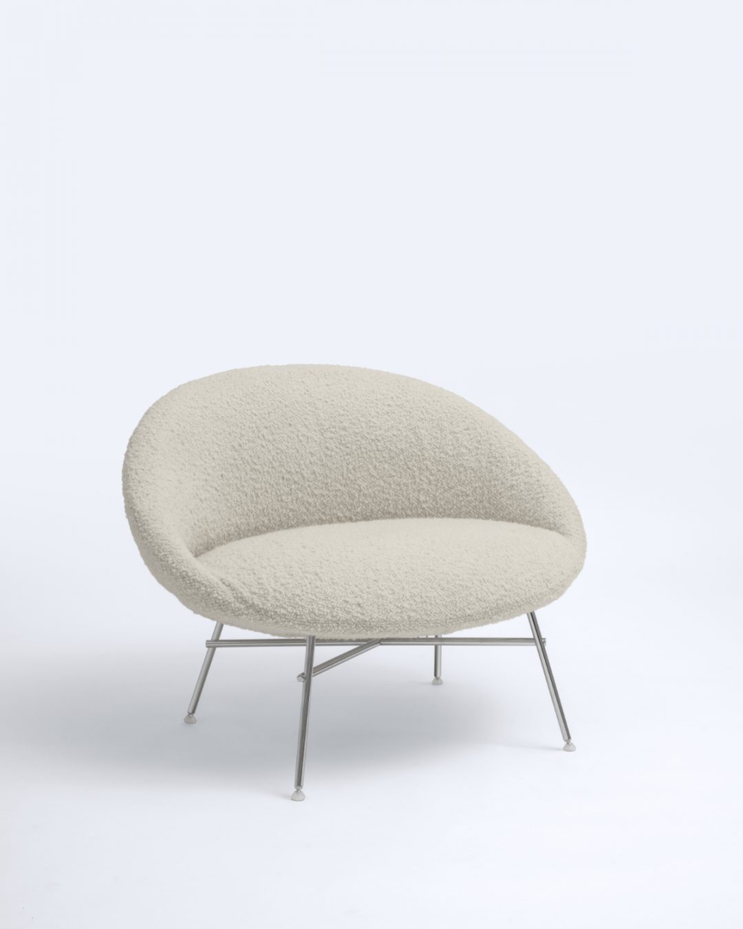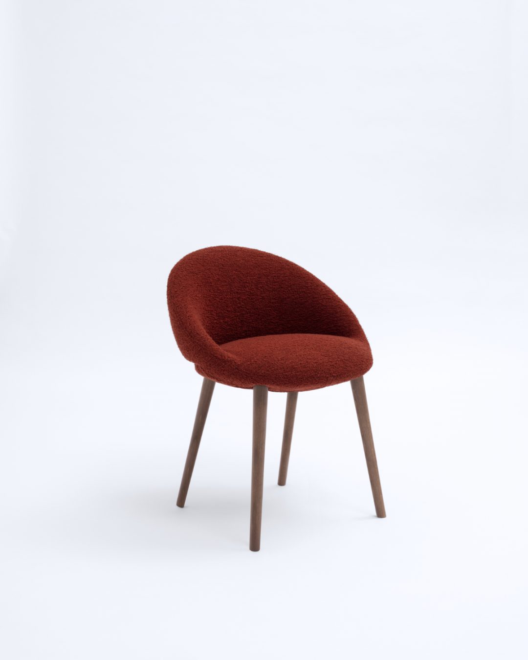 Tre le proposte per il basamento, che ne amplificano la versatilità: in versione classica con gambe in legno a sezione conica; in metallo, con elementi tubolari che si intersecano dando leggerezza e solidità; con basamento centrale a cinque razze, anch’esso in legno e decisamente di carattere.