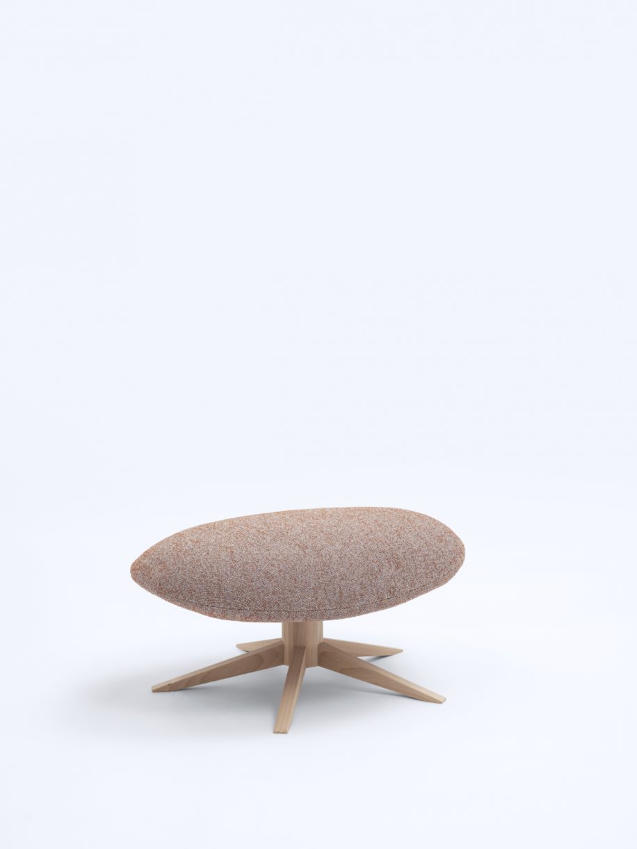 Tre le proposte per il basamento, che ne amplificano la versatilità: in versione classica con gambe in legno a sezione conica; in metallo, con elementi tubolari che si intersecano dando leggerezza e solidità; con basamento centrale a cinque razze, anch’esso in legno e decisamente di carattere.