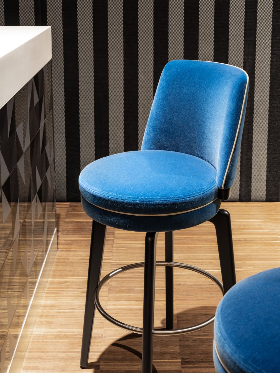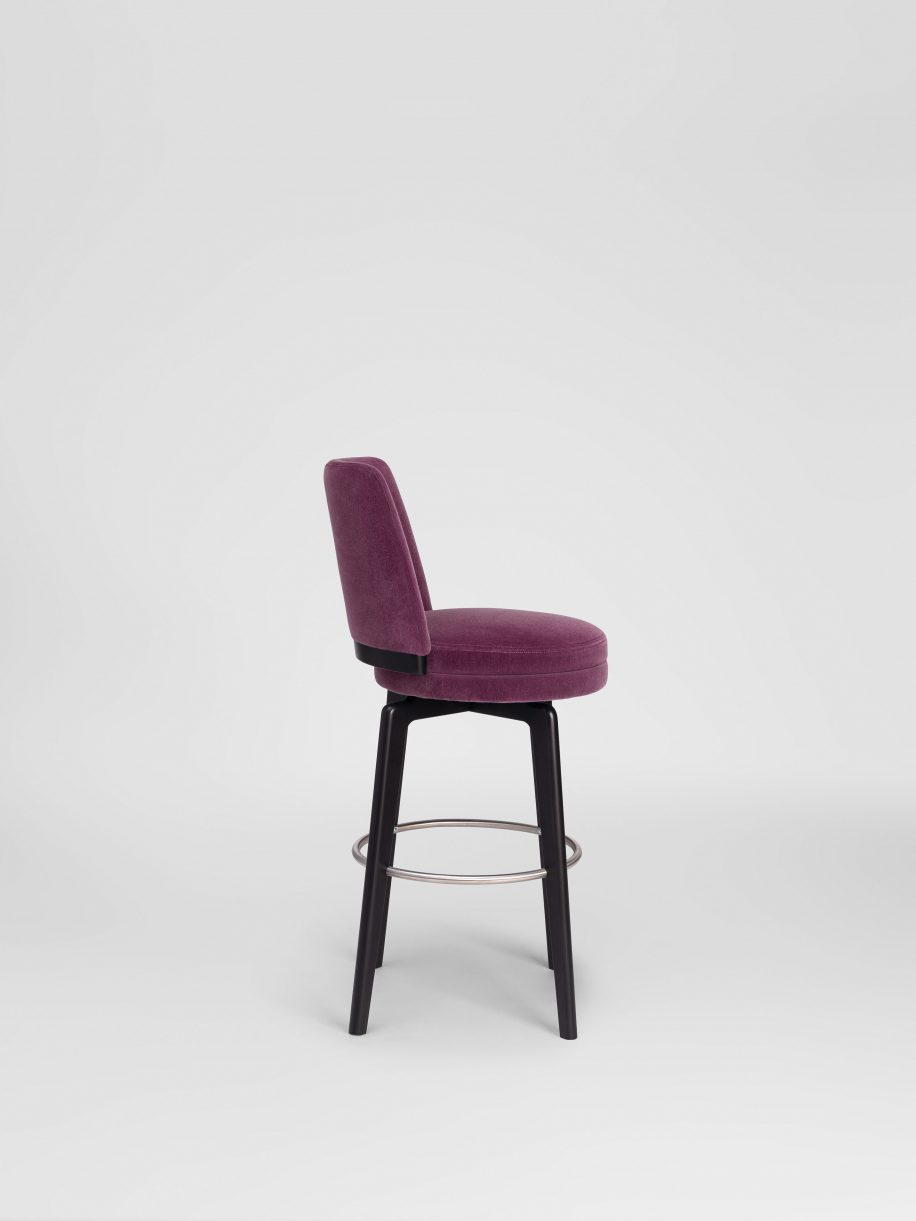 Il barstool Macaron si inserisce con eleganza negli spazi dell’ospitalità. Lo sgabello dispone di scocca imbottita, che garantisce un alto livello di comfort. Lo schienale, morbido e invitante, offre totale appoggio. La struttura portante è in legno massello di faggio o noce americano. Il poggiapiedi in metallo lo rende estremamente stabile, perfetto per un utilizzo contract. Slanciato e armonioso, bilancia raffinatezza e semplicità, come tutti i modelli Macaron. E' disponibile nella versione con seduta fissa o con seduta girevole.