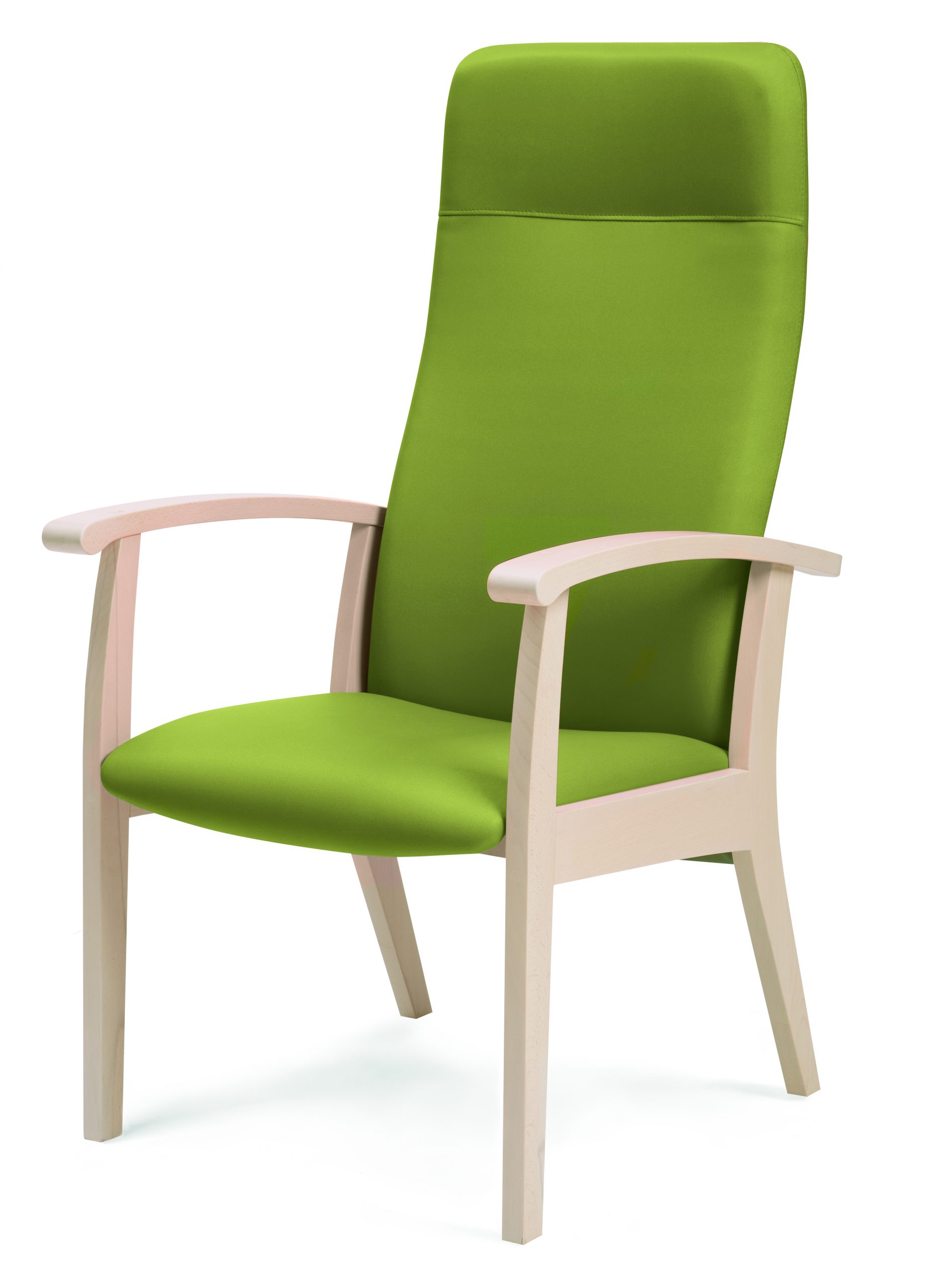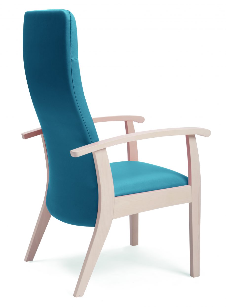Poltrona con schienale alto e imbottitura sagomata.