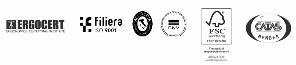 La qualità, la resistenza alla sollecitazione d’uso, la sicurezza e la durata dei prodotti sono testate dal Catas, il più importante istituto italiano per la certificazione, ricerca e prove nel settore legno-arredo, punto di riferimento in Italia e nel mondo. Sedili e schienali sono sottoposti a 200.00 cicli di prove di carico.